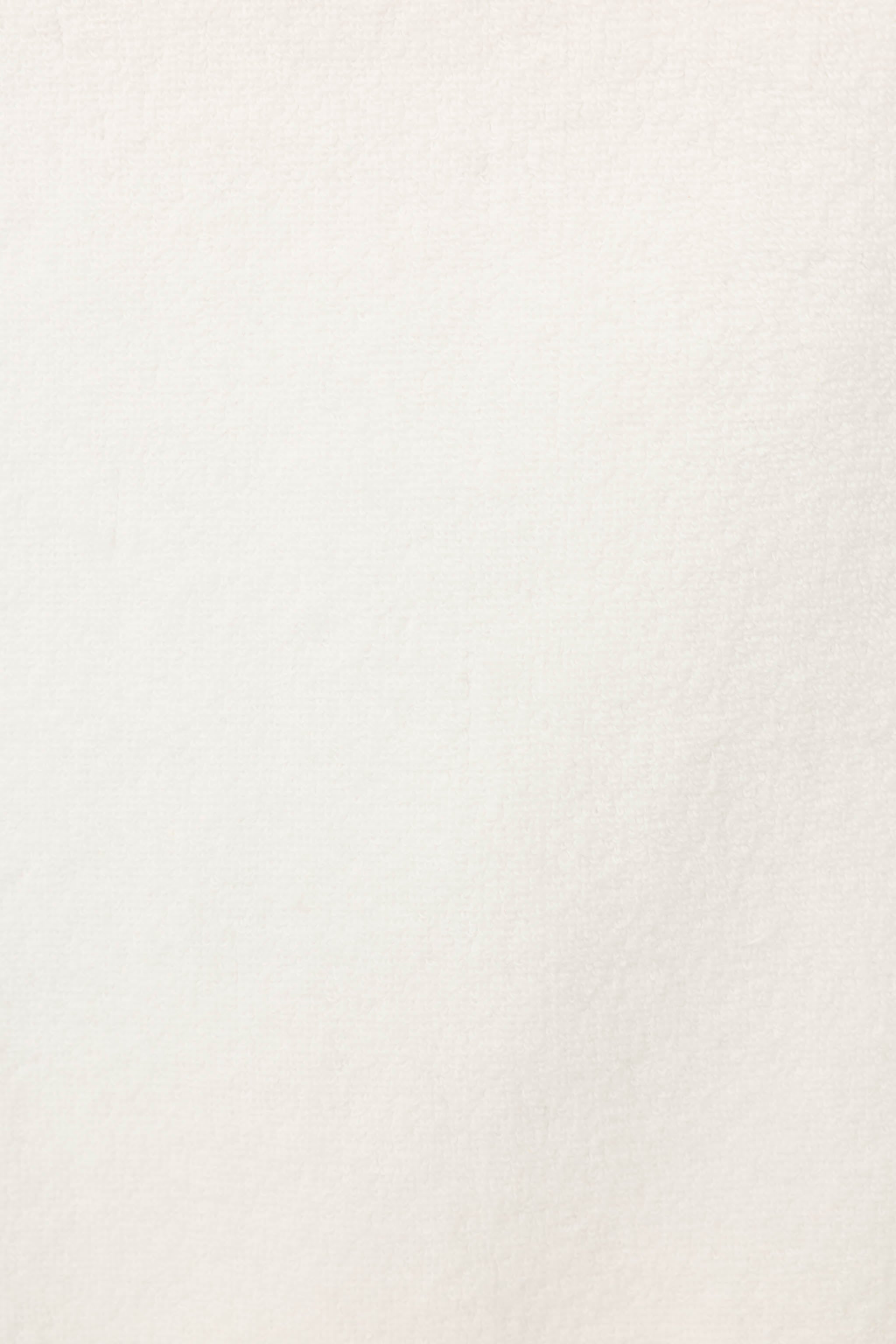 Easygoing and a little cheeky, this white terry robe brings a subtle cocktail-hour nod to your off-duty routine. Crafted from soft cotton towel terry, it features an oversized, midi-length silhouette with light blue piping, a self-tie belt, and patch pockets, finished with margarita embroidery at the chest and a playful “Cocktails Please” script at the cuff.